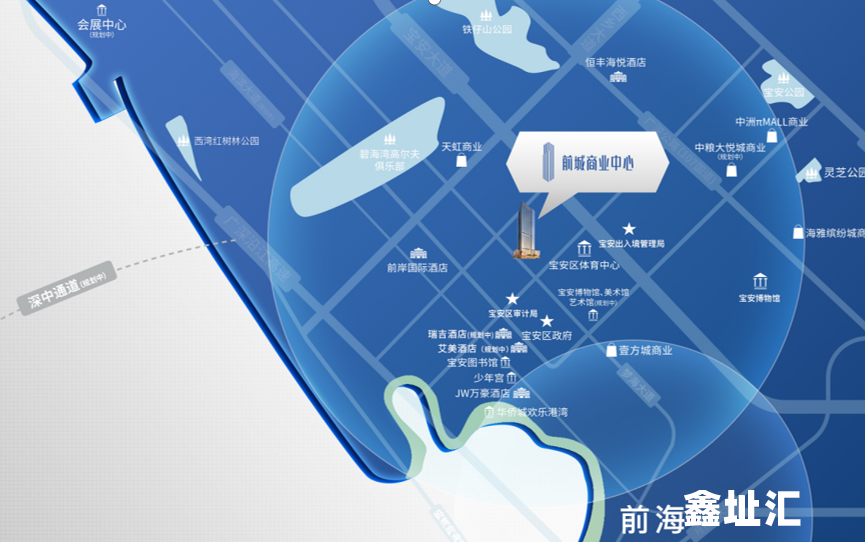 - 地理位置:深圳市宝安区宝安大道与海城路交汇处(地铁1号线坪洲站A出口无缝接驳,4站直达前海及宝安国际机场)