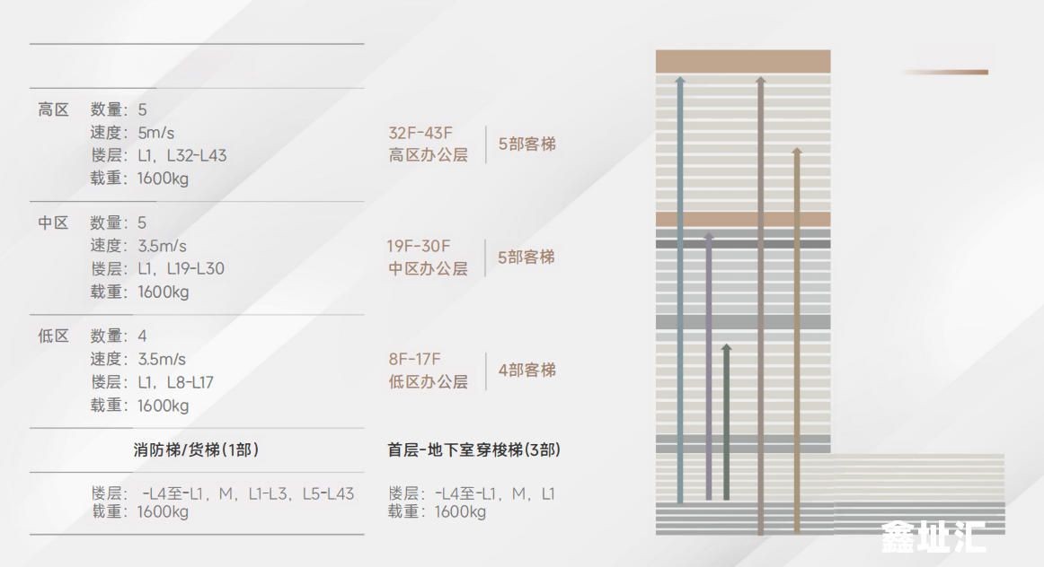 【高效电梯 提升商务效能】电梯采用全球第二大电梯品牌——迅达,其高速电梯在高端写字楼市场占有率位列前三。T1栋中、低区采用3.5m/s高速电梯,高区采用5.0m/s的超高速电梯,结合迅达最新的目的楼层选层PORD系统,缩短候梯时间提高效率,给客户最佳的商务乘梯感受。迅达电梯品牌在深圳超甲级写字楼案例:深圳平安金融中心、深圳湾壹号。[图片]【中央空调 VRV多联机独立新风系统】办公空调采用VRV多联机系统系统,使用VRV多联机系统所有室内机都可以进行独立的开关操作布置灵活多变,占用面积小可以全天候24小时运行,满足企业灵活办公需求使用方便,办公舒适度高高效节能,节省企业运营成本和提升管理效率。
