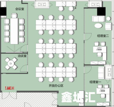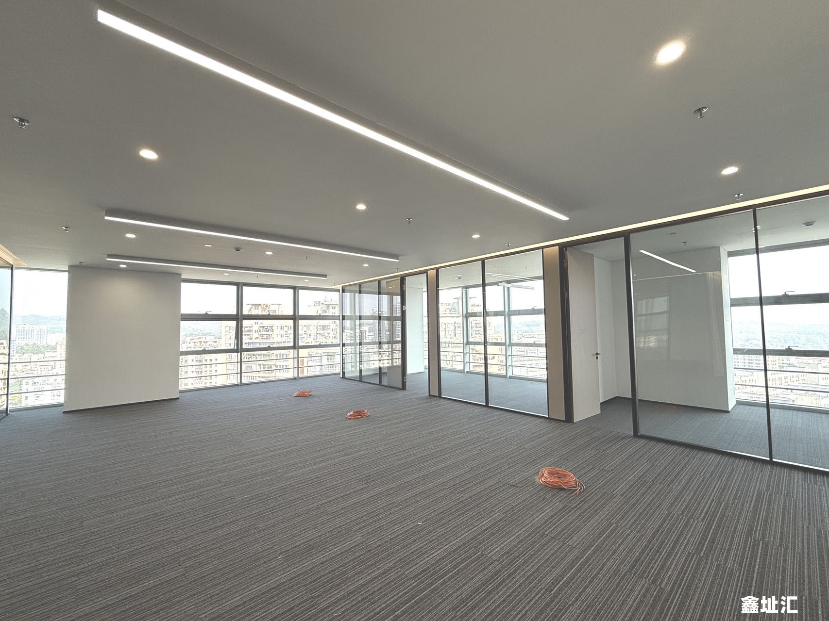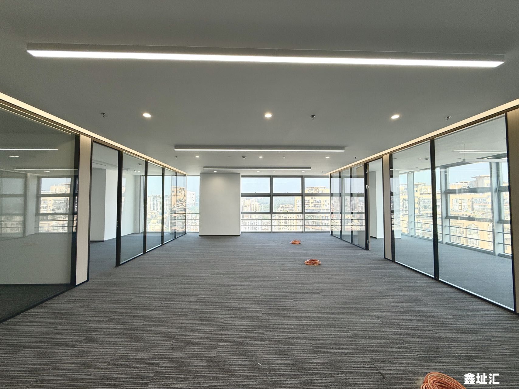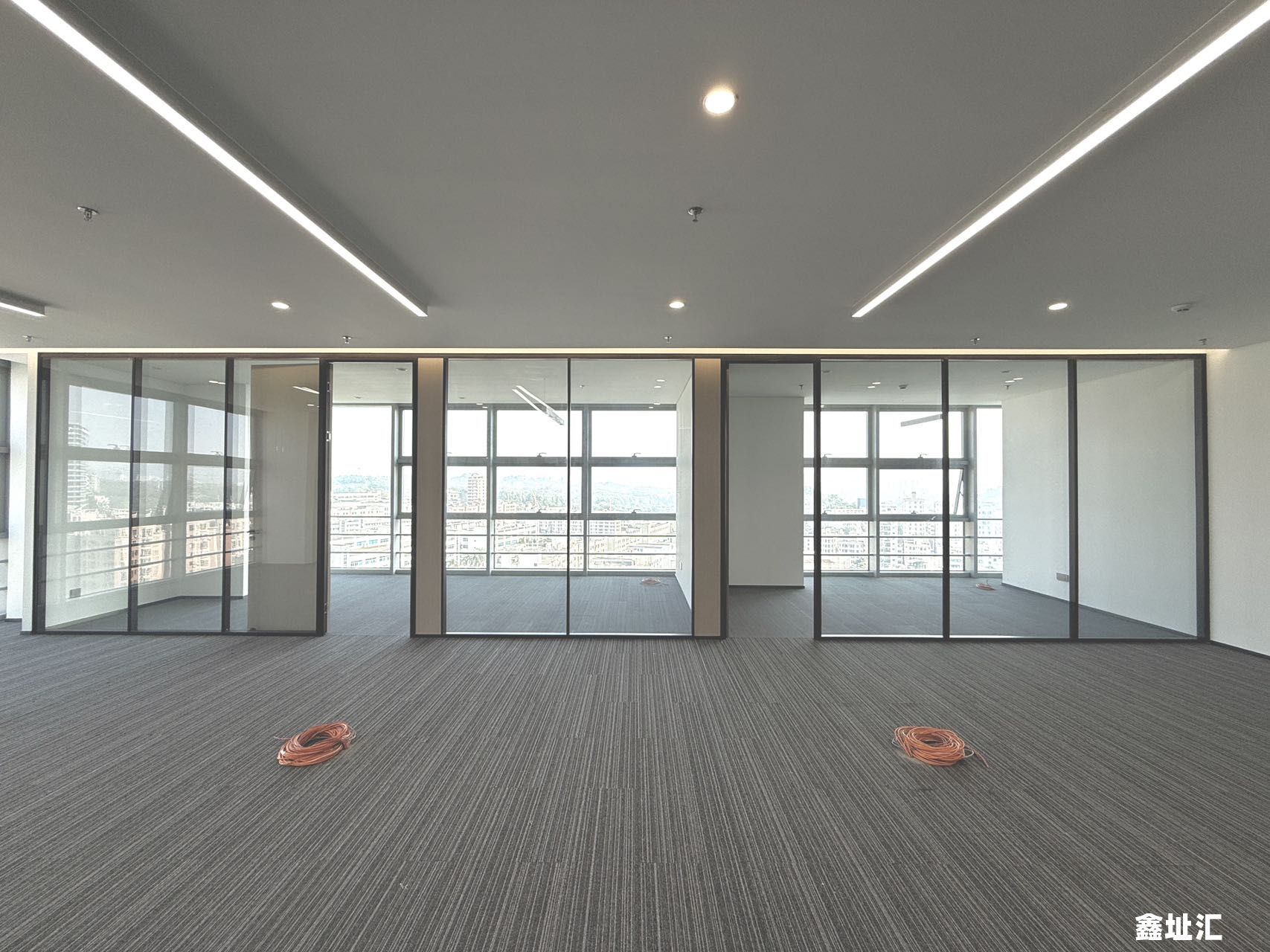 【交付标准】单元玻璃门、企业展示墙、独立隔间、网络地板、地毯、天花吊顶