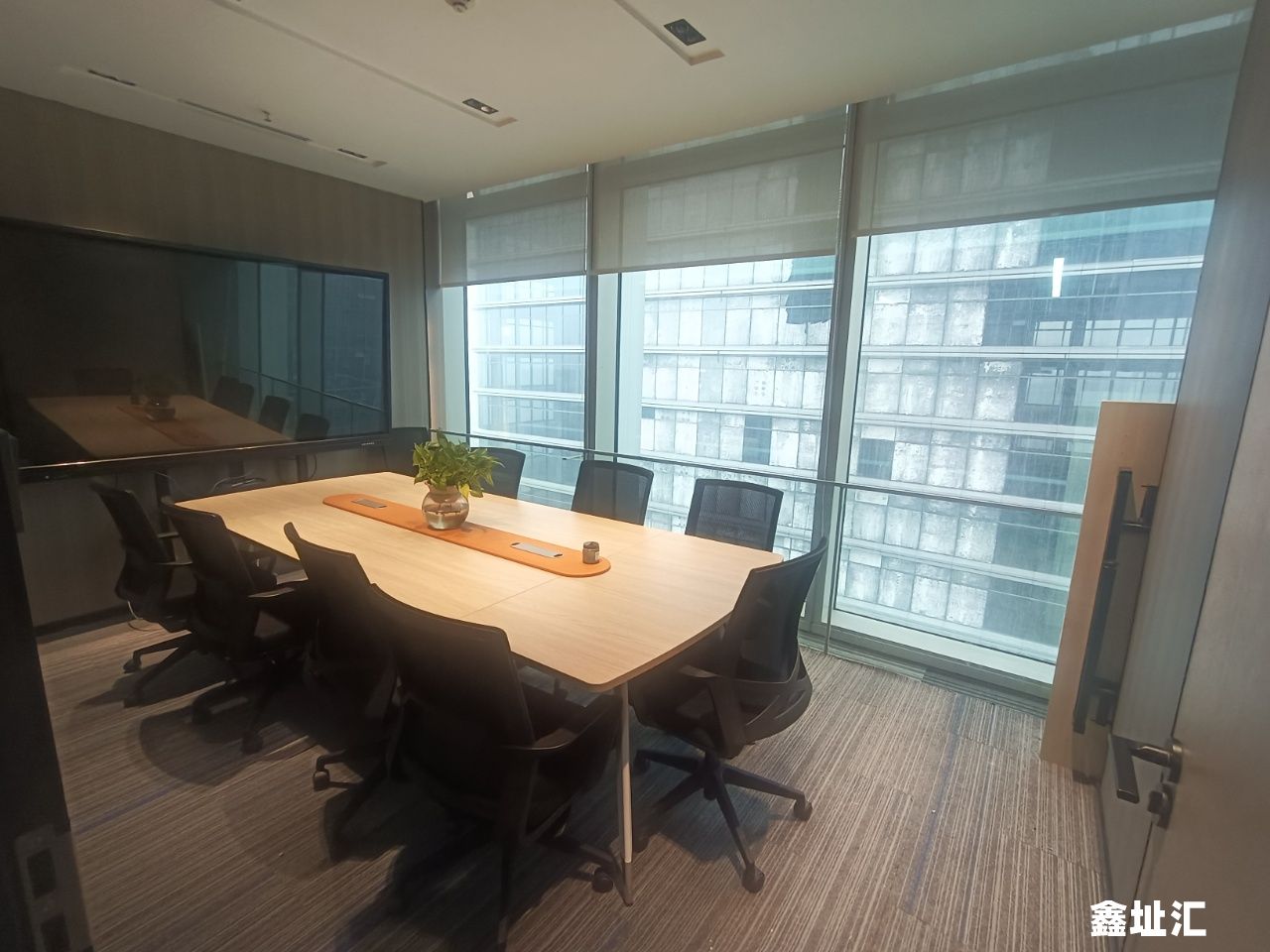 智能配置拉满:办公室电控雾化玻璃(一键切换透明 / 雾化,隐私与采光自由掌控,商务洽谈更私密)、遥控升降窗帘(操作便捷,精准调节光线,提升办公舒适度)、智能刷脸 + 指纹门锁(双重安防保障,杜绝无关人员进入,守护办公安全);